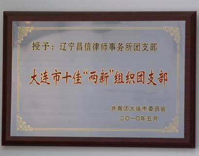 2010年所团支部被共青团2010年所团支部被共青团大连市委授予“大连市十佳‘两新’组织团支部”